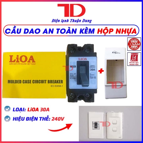 Cầu dao an toàn Lioa 30A kèm hộp nhựa (cb cóc)