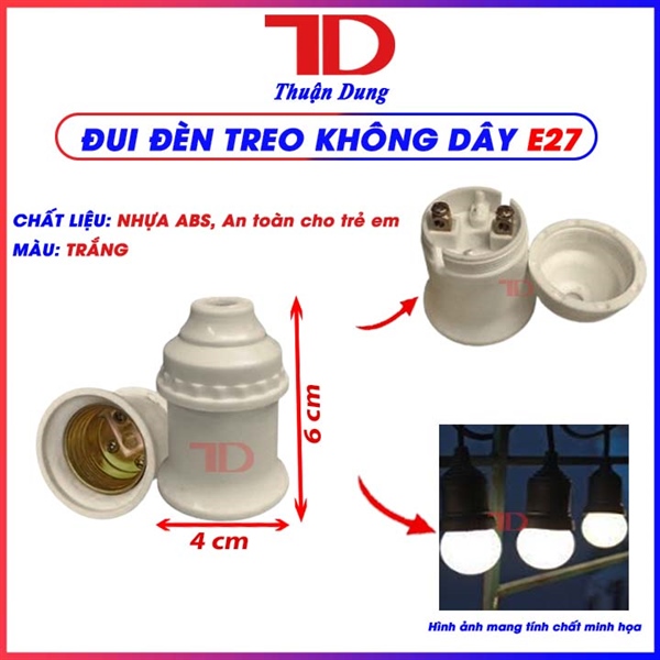 Đui đèn treo - không dây - màu trắng (Đui xoáy T s.nice), đuôi đèn
