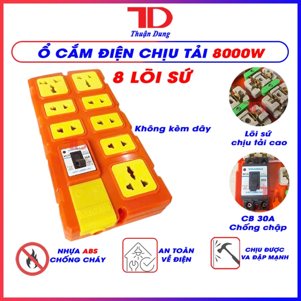 Ổ cắm điện chịu tải 8 lõi sứ CB30A Vinamax - Không dây Không phích cắm PAB