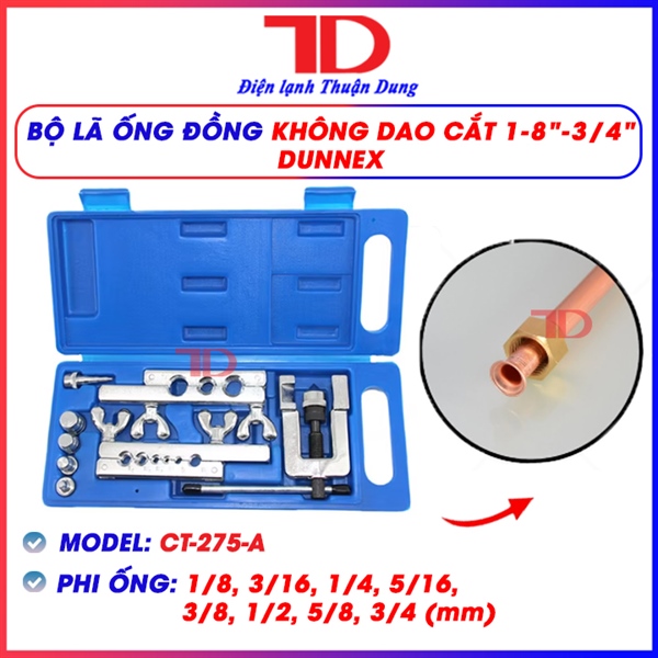 BỘ LOE ỐNG ĐỒNG DUNNEX 275 MÀU XANH, MODEL CT-275A (1-8"-3/4"), hộp nhựa chữ nhật (thùng 10 bộ)
