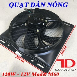 Quạt dàn nóng 14x14 loại 4 ốc motor lồi 120W - 12V Model M60 (5 cái/thùng)