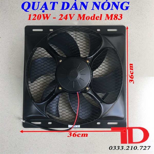 Quạt dàn nóng 14x14 loại hút 4 ốc 120W - 24V Model M83