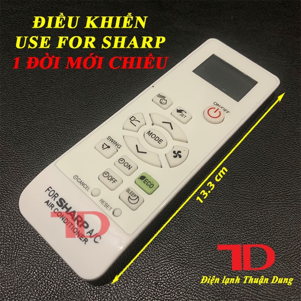 BN - REMOTE SHARP ĐỜI MỚI MẪU 1, Điều khiển Sharp – 1 chiều đời mới mẫu 1 (chiếc lá, nút nguồn đỏ)