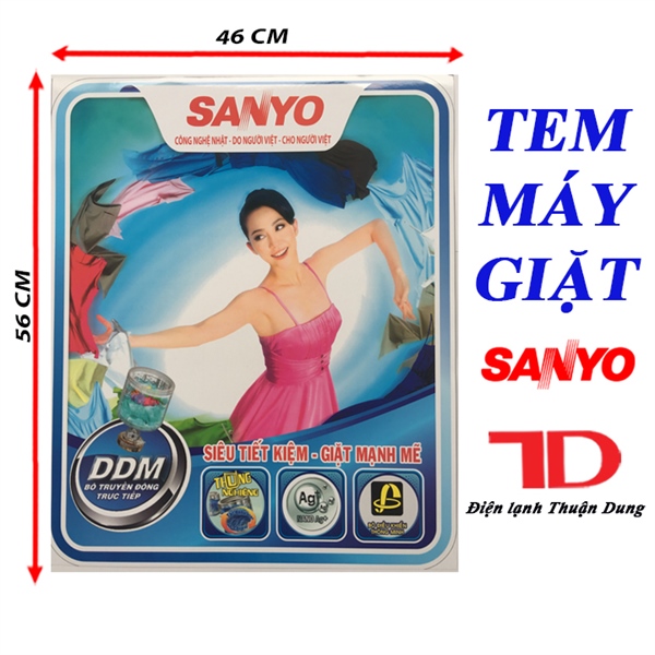 TEM MÁY GIẶT SANYO CÔ GÁI ÁO HỒNG ĐANG MÚA