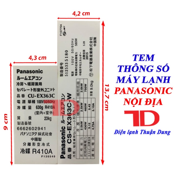 Tem thông số Panasonic R410A EX363C