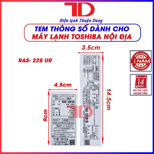 Tem thông số Toshiba RAS- 228 UR, 221 UR