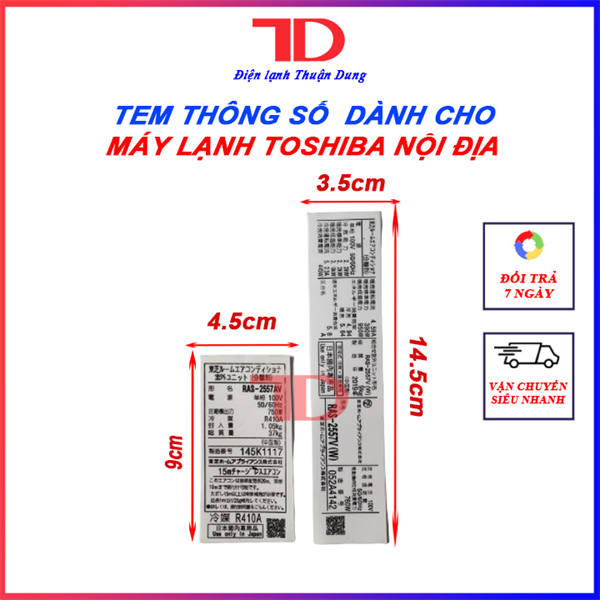 TEM THÔNG SỐ TOSHIBA RAS- 2557V (W), 251, 258