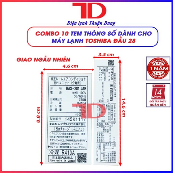 TEM THÔNG SỐ TOSHIBA RAS - 288 UR (W), 281, 2857