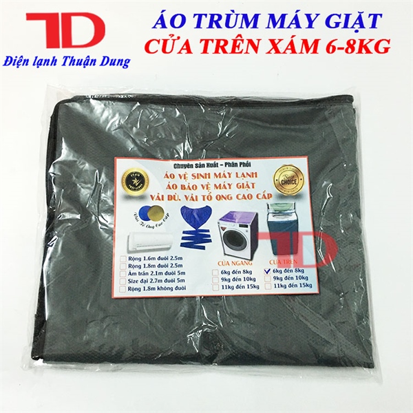 ÁO TRÙM MÁY GIẶT CỬA TRÊN TỪ 6 ĐẾN 8KG MÀU XÁM
